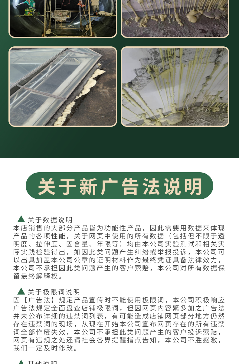 3、包水性大。韧性佳、无收缩,与基层黏着力强,且对水质的适应性强,海水也能固化。